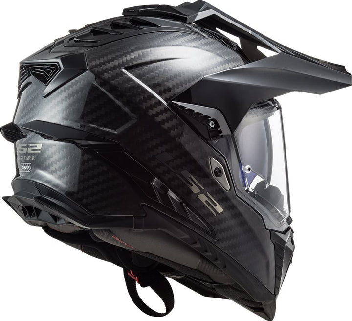 LS2 Adventure MC Helmet Explorer Carbon is de ultieme helm voor langeafstandsroutes en alle soorten substraten. Deze helm combineert maximale veiligheid en gemak dankzij de constructie van koolstofvezel, waardoor het ideaal is voor avontuurlijk rijden.