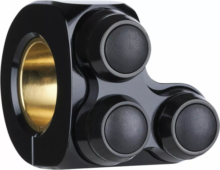 De Mo.Switch Basic is een universele, hoogwaardige drukknopregeling voor stuur met 1 inch of 22 mm (7/8 inch) buisdiameter in een eenvoudig, elegant ontwerp. In combinatie met een elektronische push-knopingsbox (niet inbegrepen), kunnen deze CNC-gemaakte push-buttons alle elektrische eenheden zoals lichten, indicatoren, elektrische starters, hoorn en nog veel meer schakelen. Optioneel is de knophouder (INLAY) ook beschikbaar met een zilver geanodiseerde kleur. De compacte behuizing is uitgerust met Eiter twee of drie drukknoppen. Alle knoppen zijn altijd in de richting van de bestuurder. De twee of drie knoppen per eenheid zijn altijd zwart. Een verborgen M4 -roestvrijstalen montageschroef klemt de behuizing veilig aan elke stuur. De afzonderlijke knoppen zijn van hoge kwaliteit, zeer robuust en geproteerd tegen trillingen en splashwater (IP65). Ze staan een veilige bediening toe-zelfs bij het werken met een handschoen. Een single-wire of tweedraads bedrading is gemakkelijk mogelijk door twee terminals per drukknop. Eén terminal voor de grond wordt al intern verstrekt voor bedrading met één draad. Kabelroutering in de handgreepstaven is daarom eenvoudig. In geval van mogelijke schade zijn de enkele push-buttons beschikbaar en kunnen worden vervangen. De mo.witch-basis is natuurlijk compatibel met alle gewone push pus