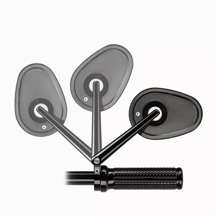 De compacte oplossing met 110 mm armlengte, voor Scrambler of Super Moto., Snelle installatie met een breed scala aan montageopties zonder wijzigingen in het stuur. , Uiterst praktisch voor smalle passages, ruimteproblemen in de garage of voor transport. Het vergrendelingsmechanisme is zeer stabiel en kan niet per ongeluk worden aangepast. De spiegel trilt niet, zelfs niet bij hoge snelheden wanneer het correct is gemonteerd. De spiegel kan boven of onder het stuur kunnen worden gemonteerd. Onze Glasless Mirror -serie Mo.View is uniek in de wereld. Het speciale kenmerk van onze spiegels is het gepatenteerde spiegeloppervlak, dat rechtstreeks vanuit het metaal van het lichaam wordt bewerkt. Het aluminium zelf is het spiegeloppervlak., Het spiegellichaam zelf is erg dun en licht, waardoor een gewichtloos ontwerp zonder rand of frame ontstaat. Het convexe spiegeloppervlak wordt vervaardigd door vliegsneden met behulp van diamantgereedschap op ultra-precisiemachines in Berlijn. Het wordt vervolgens resistent gemaakt tegen oxidatie, corrosie en slijtage door een complexe plasmacoating in een vacuüm. Het spiegellichaam en de spiegelarm worden gemalen uit vast aluminium op CNC -machines en geanodiseerd tot een hoge kwaliteit. Alle schroeven zijn gemaakt van roestvrij staal. De precieze kogelverbindingen De spiegel die comfortabel en zeer stabiel moet worden aangepast. Glazen breuk of glasuitval is gewoon niet mogelijk. Een speciaal kenmerk van de spiegels in de flip -serie is de draaipirrorarm met gedefinieerde vergrendelingshoeken met intervallen van 45 °. Hierdoor kan de spiegel naar boven worden gekanteld zoals vereist zonder de spiegelinstelling te wijzigen.