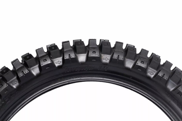 De nieuwste toevoeging aan de MOTOZ MX Tyre Range is de Terrapactor MXI (MX Intermediate) Competition -band. Ontwikkeld met een lichtgewicht karkas en ontworpen om uit te blinken in tussenliggende tot hard terrein (mix van losse en verpakte grond, hard verpakte grond en diepe zware sporen). De benchmark voor MX -bandenprestaties over meerdere soorten terrein!, Valt de MXI -band op met zijn onderscheidende patroon, specifiek vervaardigd om topprestaties te leveren. Door strategisch flexpunten in het karkas en de knoppen op te nemen, biedt de MXI -band voorspelbaarheid en verbeterde hoekgreep, aanpassen en buigen volgens het terrein om meer controle en vertrouwen te geven tijdens het rijden. Hardgepakte grond en diepe zware sporen), volledig bereik van mini-cross tot grote fietsen (15 verschillende maten), twee voorbandenmaten, 80/100-21 voor de meest agressieve op de baanprestaties en de geheel nieuwe 90/100-21 met een groter profiel voor verhoogde omstandigheden, unieke flexzones ingebouwd in karkas en knobbels voor verbeterde flexzones in het velen en combineren in het kookholte, helemaal Voor verbeterde naleving