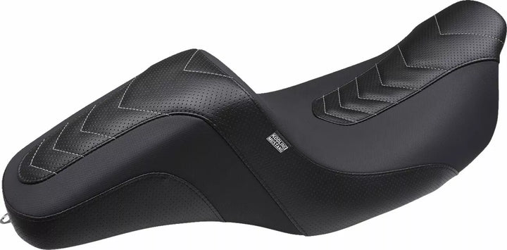Performance-boordige variatie van een van de meest populaire stoelplatforms met een unieke look, met contrasterende kleur, omgekeerd Apex Chevron-patroon op geperforeerd vinyl, gesplitst paneel, grijpervinylbedekking voor stabiliteit en prestaties, renners zijn gepositioneerd sligt. De Rider verhoogde ondersteuning van de onderrug, brede staartsectie biedt een stijlvol uiterlijk en voldoende comfort voor 2-up rijden, Mustang's eigen gecontroleerde dichtheidsschuimformule vereist geen inbraak en behoudt vorm en ondersteuning na jaren van gebruik, mariene, mariene duurzaamheid, polyurethaanbumpers om trillingen te absorberen te absorberen vibratie
