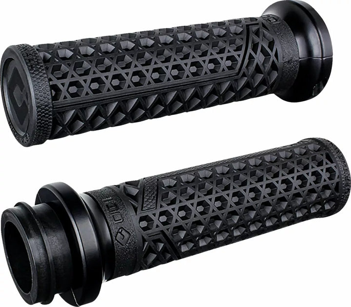 The Vans V-twin Lock-on Grip System Feature The Classic Vans ᆴ Waffle Sole Pattern And are Built to Deliver An amazing Riding Experience, 100% Slip-Free Performance Guaranteed, In-Molded Throttle Tube With Integratuation, SIDE CLAMP Eliminates The Need for Grip Glue or Safety Set-Sscrews, Providing Simple Installation and Removal, T15 Torx Bolts Provide Extra Secure Clamping For Solid, Twist-Free Mounting, Proprieth Wydium Medium-samengestelde durarometflens, gemaakt in de VS.