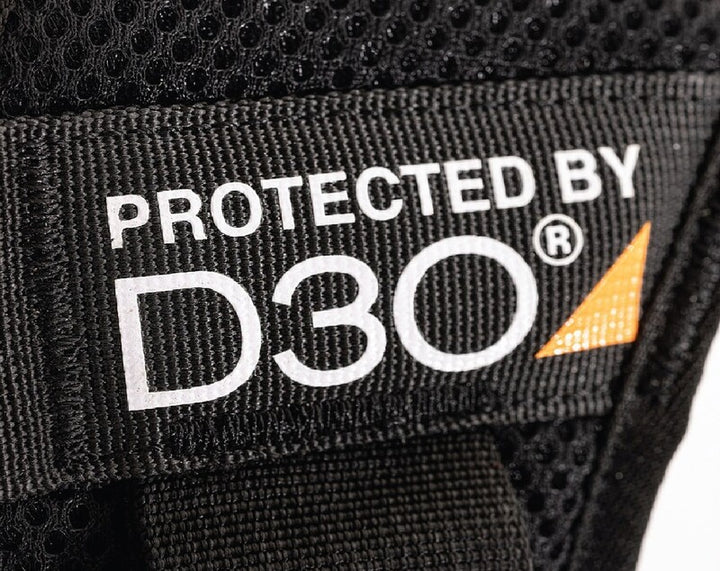 Uitgerust met een genaaid in D3O® Level 2 Achterbeschermer. D3O® -beschermers zijn ontwikkeld om te worden gebruikt voor bescherming tegen botte impact