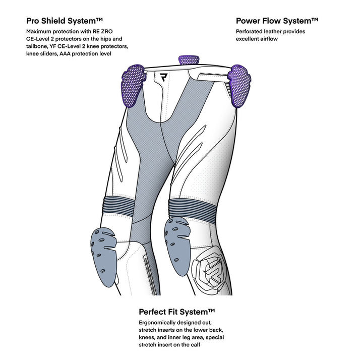 Rebelhorn Inferno lederen broek is de juiste keuze voor diegenen die racengevoelens willen, topklasse bescherming en sportief comfort - zowel op straat als op de baan.