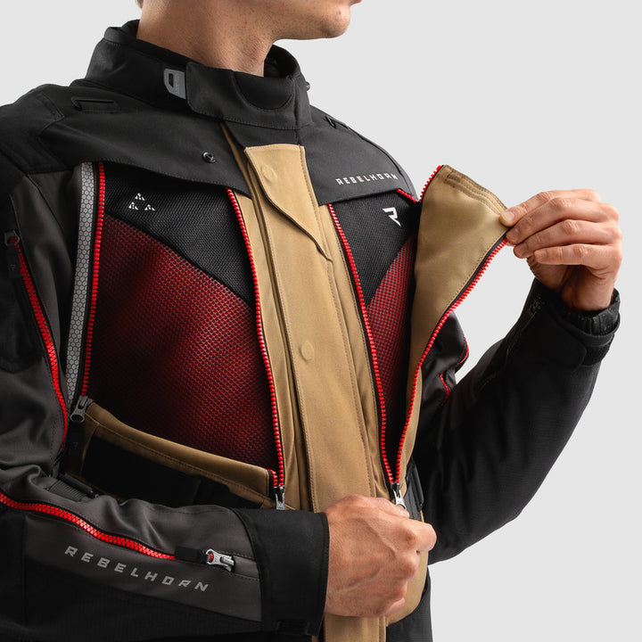 Klaar voor alle wegen, alle weersomstandigheden en alle avonturen - Rebelhorn Hardy 3.0 Is het touringjack dat comfort, bescherming en functionaliteit naar een geheel nieuw niveau brengt. Het is gebouwd voor degenen die regen, hitte of lange mijlen niet in de weg staan van de volgende beurt. Met zijn geavanceerde 3-winkels systeem past Hardy 3.0 soepel aan zowel aan het klimaat als de rijstijl, of je naar Noord-Kaap rijdt of een zondagsreis in de regen maakt.