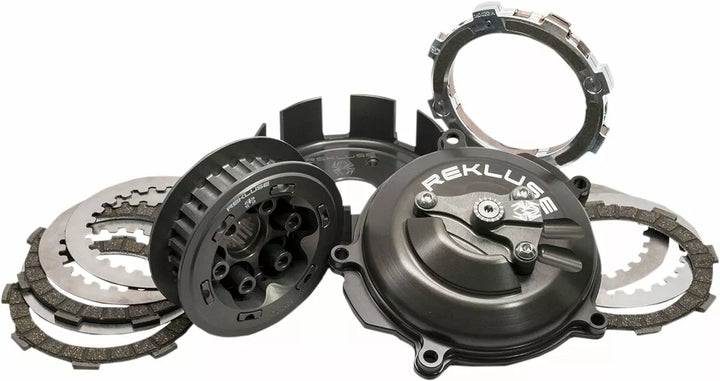 Core EXP 3.0 is a centrifugal auto clutch featuring Rekluse's EXP (auto clutch) technology, Full clutch control and use of the lever is retained for a no-compromise riding experience, Core EXP 3.0 offers dead-on clutch engagement every time and allows riders to take off and stop in gear without using clutch lever, RKLUSE'S BILLET CENTER HUB AND PRESURE PLAT THE CLUND THE CLUTCH TO SIX CRACKS WHICE IMPROES LIVES FEEL, Koppelingsprestaties en duurzaamheid, verhoogde oliedassages in de middelste naaf en drukplaat verplaatsen meer olie door de koppeling, de verklaring van de opera vereist geen aanpassing aan voorraadcomponenten, waardoor de transmissie wordt verplaatst ongewijzigd (koppelingslevensgebruik wordt aanbevolen voor het verschuiven), gemaakt in de VS.
