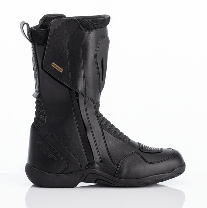 Om comfortniveaus verder te ondersteunen, zijn er reflecterende textielbewegingspanelen vooraan en achter in het bagagecompartiment. De belangrijkste functie is echter hoe de laars kan worden ingesteld. De dubbelzijdige ritsen en haaklussen gaan open zodat de voorkant van de laars kan worden weggespoeld. Dit laat een grote opening achter die een Sympatex -kous aan de binnenkant van het bagagecompartiment bevat. Als het gaat om het sluiten, maken de extra grote haak- en luspanelen verschillende aanpassingsniveaus mogelijk om verschillende kuitmaten te ondersteunen en omdat wanneer de jeans in het bagageruimte worden gevuld.