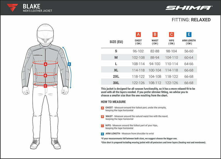 Het zal vooral worden gewaardeerd door liefhebber van vintage stijl op zoek naar een universeel product dat hen allebei zal vergezellen terwijl ze rijden en nadat ze van de fiets zijn gestapt. Naast de H3 -kopketen is een optionele extra luchtstroombesturingsfunctie - een krachtig koelventilatiepaneel dat over de lengte van de jas kan worden geopend. De Blake -jas is uitgerust met gecertificeerde elleboog- en rugbescherming, inclusief het Shima Armour plus bescherming met een geheugeneffect op de achterkant, dat de hoogste veiligheidskwaliteit garandeert in combinatie met een uitzonderlijk gevoel van comfort tijdens het rijden. De jas is uitgerust met een slimme verborgen droge zak in de voering en met een korte rits kunt u deze bevestigen met geselecteerde Shima -broek. Elk model wordt geleverd met een sleutelring in leer, die perfect bij uw jas past.