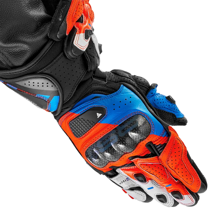 In geitenhuid En versterkt met Kanguruliers in de palm, combineert RS-3-duurzaamheid met behendigheid. Je krijgt Sap schuifregelaar in de palm, Harde knokkelbescherming met koolstofvezelversterking, Mini-slider bij de pink, ook TPU -bescherming op uw vingers. Pantser-bumping schuim En versterkte gebieden beschermen waar het het meest nodig is - zelfs in hard contact met het asfalt.