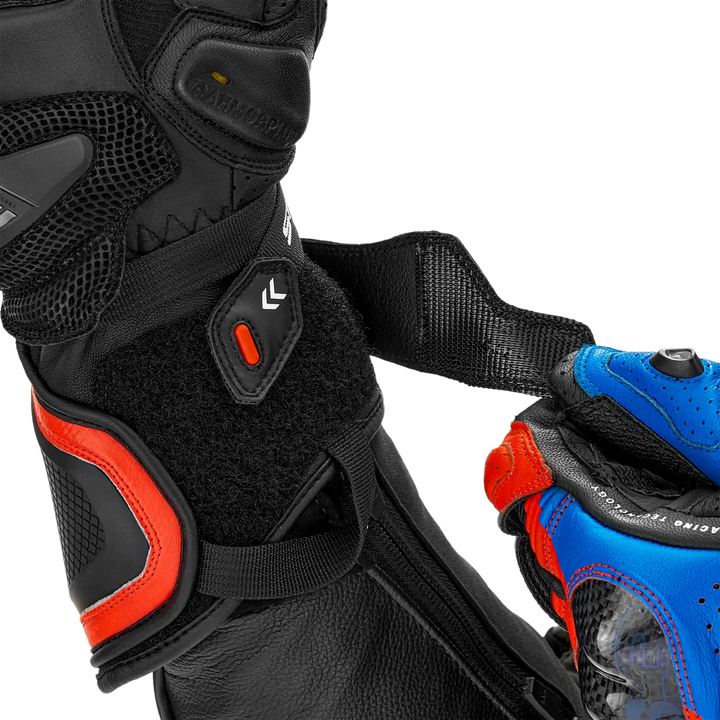 Met Lade -vingers, Rekpanelen En Floating Knuckle Technology (Waar de knokkelwacht met je hand beweegt), krijg je bewegingsvrijheid zonder drukpunten. V-Lock Pro ™ sluiting En lange neopreenkussens houden de handschoen veilig op zijn plaats, zelfs tijdens het stoer rijden.