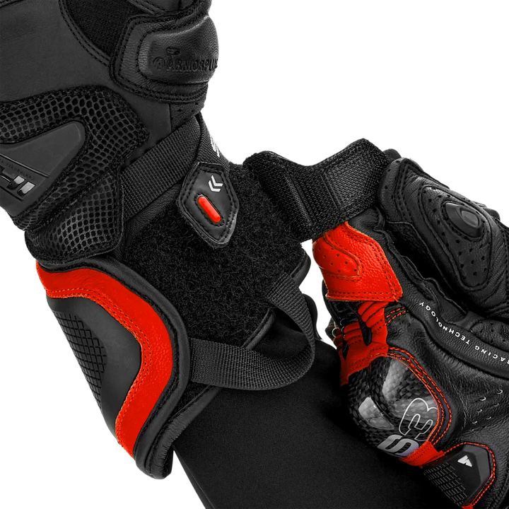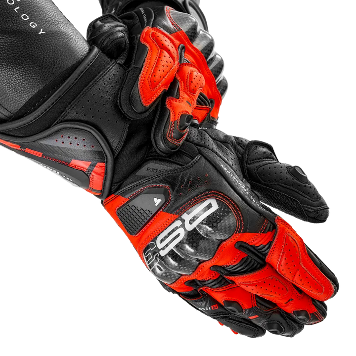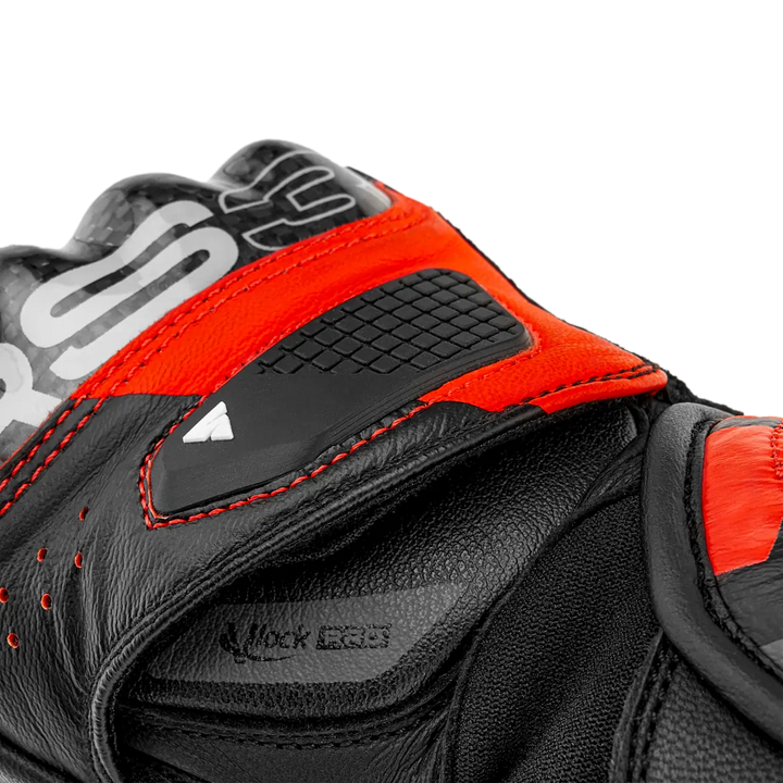 In geitenhuid En versterkt met Kanguruliers in de palm, combineert RS-3-duurzaamheid met behendigheid. Je krijgt Sap schuifregelaar in de palm, Harde knokkelbescherming met koolstofvezelversterking, Mini-slider bij de pink, ook TPU -bescherming op uw vingers. Pantser-bumping schuim En versterkte gebieden beschermen waar het het meest nodig is - zelfs in hard contact met het asfalt.