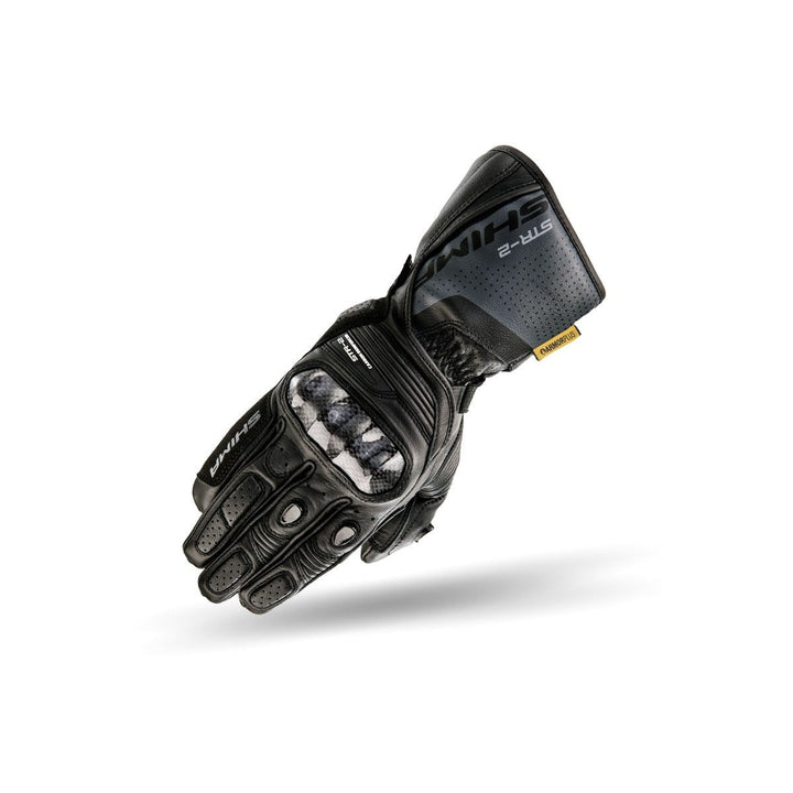 Shima STR-2 sport- en stadsmotorhandschoenen versterkt met koolstofvezel in het enkelgebied, voldoet aan de hoogste beveiligingsnormen. De sportieve stijl wordt benadrukt door schuifregelaar op hun tenen en expressieve kleuren waarin ze zich voordoen.