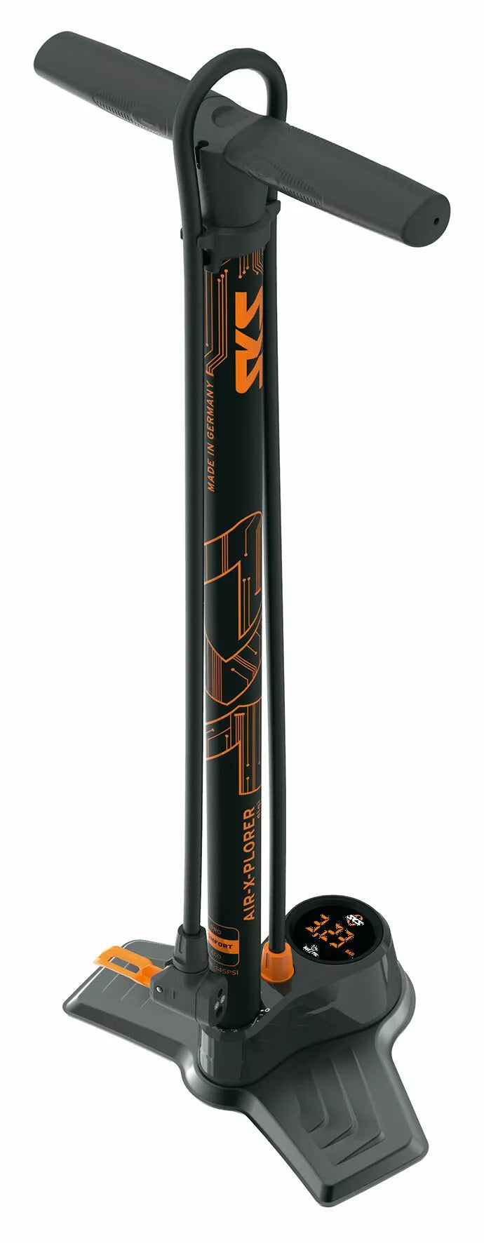 De SKS Air-X-Plorer Digi 10.0-vloerpomp maakt indruk met een hoogwaardige LED-digitale manometer. , De eersteklas sensortechnologie garandeert een hoge maatstaf nauwkeurigheid en levert precieze luchtdrukwaarden tot 10 bar (144 psi). Andere functies omvatten de soft-touch handgreep met handgreepcompartiment Für Tyre Longs, de extra lange high-press kleptypen. De grote stalen buis en de vaste metaalbasis garanderen goede vermogensoverdracht, waarmee hogere drukken (476 cm³ kunnen worden gepompt in de banden., Incl. Batterij: 2 x Micro AAA., Made in Duitsland.