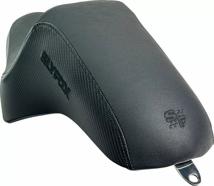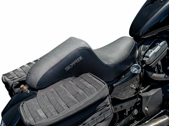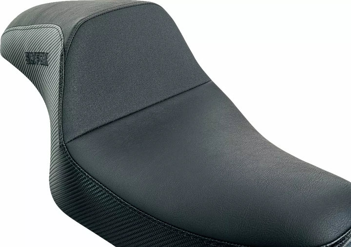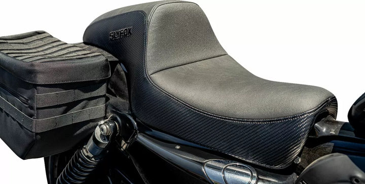 Automotive -grade vinylzitje, slipstop op lumbale en koolstofvezel aan de zijkanten, lange ondersteuning van de bestuurder met unieke stijl, voorgevormd zitgedeelte voor maximaal comfort, smal vooraan voor betere pootruimte, stoel flexibele flexibele urethaf perfecte pasvorm, volledig bekleed bodem en rubberen bumpers om verf te beschermen, alle hardware bevestigd aan stoel en instructies, gemaakt in de usa