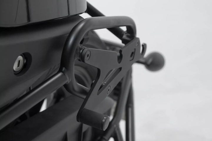Met deze adapterplaat kunnen Legend Sarren LH1-zijzakken met een SLH-bevestiging worden getroffen aan de SLC-zij-carrrier., Voor het bevestigen van een SLH-mount aan de rechter SLC-zijdrager., Gemakkelijke installatie van de adapterplaat op een SLC-zijplaats Placets Alreve. Rechtszijde, bevestigingsinstructies, montagemateriaal