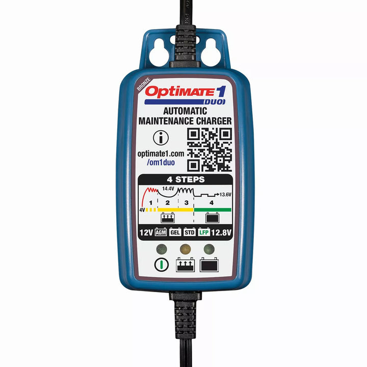 Opticate 1 Duo Bronze Series: 4-STEP 12V / 12.8V 0.6A Battery Mainainer., De ム No Brainer メ Battery MainTer voor de hi-Technology Battery in uw prestatievermogensportvoertuig. Garandeert gezonde lithium- of loodzuurbatterij!, Ideaal voor 12V loodzuur & 12.8V / 13.2V Lithium LFP (LIFEPO4) Batterijen., Duo: Automatisch past zich aan het verbonden batterijtype aan. Automatisch past zich aan aan de PB- of LFP -batterij. Opticate 1 Duo doet het denken voor u!, Laadt en levert automatisch onderhoud op lange termijn. Opticate 1 Duo maakt uw batterij sterker en verlangt niet, geen toezicht vereist!, Veilig om verbonden te blijven. Volledige elektronische bescherming., 24/7: Veilig om verbonden te blijven. Volledige elektronische bescherming., Lage volt start van 4V., Groene technologie: energiebesparende technologie. Stand-by kracht minder dan 0,5 W. Efficiënt 24-7 batterijonderhoud., IP50: stofdicht. Rated voor binnengebruik tot -20 ᄚ C / -4 ᄚ F., inclusief 2 verwisselbare accessoires voor batterijverbinding.