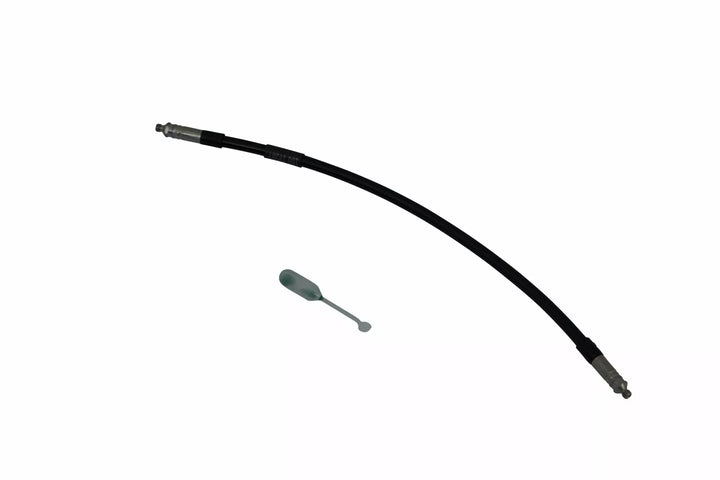 De binnenste kern is gemaakt van PTFE, stalen stof heeft vier draden, verkrijgbaar in zwarte of heldere stijlen in aangepaste lengtes van 13 cm l tot 200 cm L, slanguiteinden hebben schroefconnectoren; Moet slanguiteinden en banjo -bouten afzonderlijk bestellen voor een complete remlijnassemblage, elk verkocht, remlijnen samenkomen met internationale uw standaard FMVS106