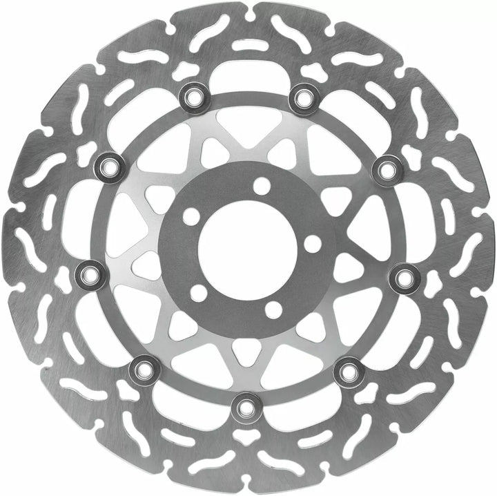 Hoogwaardige stalen rotorconstructie, speciale grondrotoroppervlak afwerking Tellers trillingen en verbetert de remprestaties, de binnenring van drijvende remschijven is gemaakt van aluminium met een exclusieve titaniumkleur geanodiseerde afwerking, voor gebruik met alle TRW Compoound, moet twee schijven bestellen voor dual-rotor-toepassingen