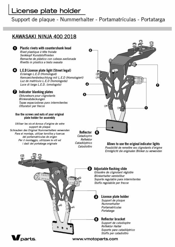 V onderdelen kentekenplaathouder zijn vervaardigd in Frankrijk. Inconspicouse en perfect afgewerkt, ze zijn specifiek ontwikkeld voor de bijgevoegde fietstoepassingslijst. 2 mm dun maar stevige stalen kentekenhouder zwarte epoxy paintingcnc vervaardigd - laser gesneden: precieze afwerkingsgaten om kenteken, indicatoren en kentekenverlichting te repareren gemaakt in Frankrijk inhoud: straat juridische licentieplatverlichting, Gecertificeerd Meer info: geoptimaliseerde en discrete kabel doorgang en eenvoudige montageadjustable indicatoren