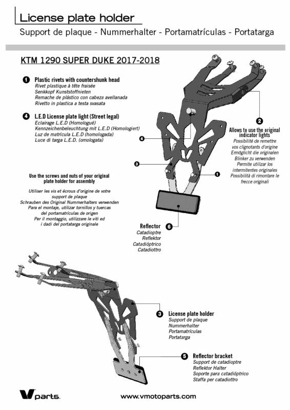 V Onderdelen Kentekenplaathouder Zwart KTM 1290 Super Duke R C8-PM006