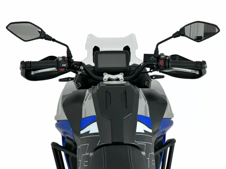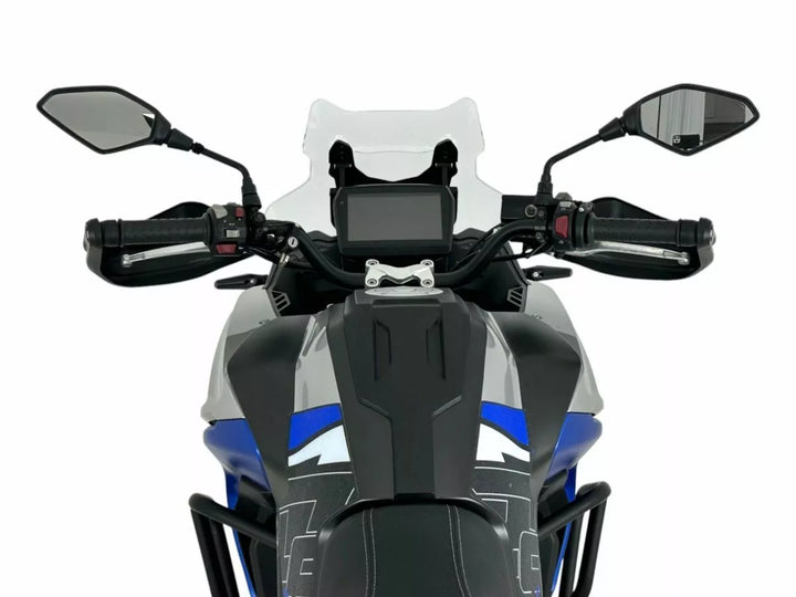 Gemaakt volgens de strengste normen in termen van veiligheid en respecteer de knowhow, die maximale weerstand en transparantie garandeert. De aerodynamische lijnen van deze voorruit zijn gedetailleerd bestudeerd om luchtvrij tot een minimum te verminderen. Deze voorruit geeft de fiets een nog boeiender uiterlijk., Voorruit gemaakt met PMMA Plexiglas van hoge kwaliteit, 3 mm dik., Voor degenen die meer dekking van de lucht willen, raden we de andere twee versies aan touring of caponord aan.