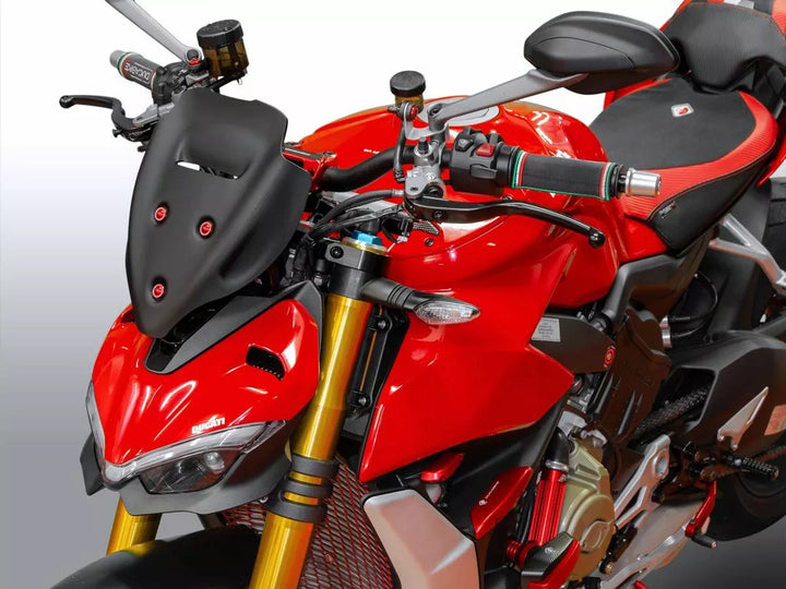 Voorruit gemaakt met behulp van PMMA Plexiglas van hoge kwaliteit, de vervelende turbulentie op de schouders en helm zal worden geëlimineerd, de grotere bescherming die door het scherm wordt geboden, past perfect bij de lijn van de fiets, waardoor het een nog meer app heeft