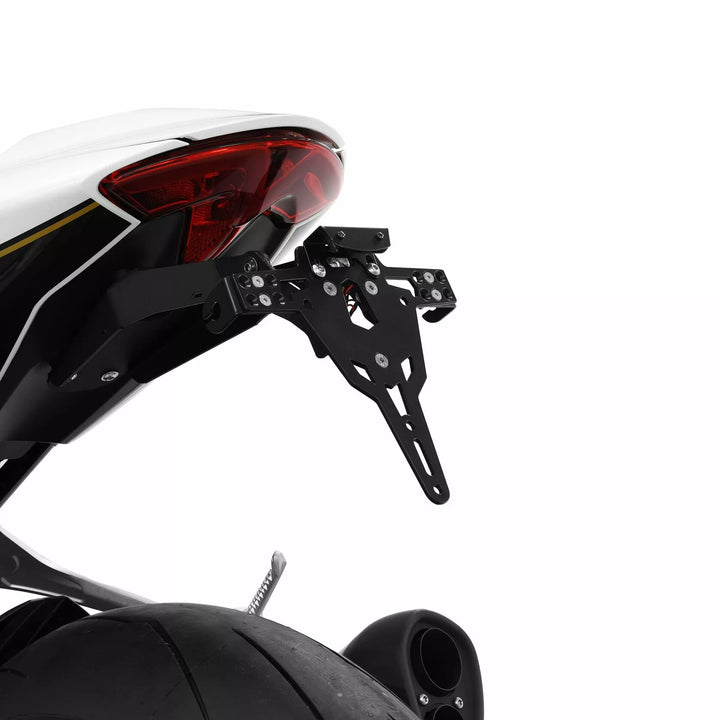 De kentekenplaathouder is extreem duurzaam en weerbestendig., Zwart poeder bedekt. , De kentekenplaathouder kan worden gebruikt voor elke soort kenteken (175 mm breedte)., Geen wijziging van de vereiste kuip., Stepless aanpassing van de harkhoek., Indicatorondersteuning in 3 posities. Plaat., Speciale indicatorlichtmounts (afzonderlijk verkocht) vereist voor stockindicatorlichten., Kit omvat: 1 kentekenplaathouder incl. Montagekit., LED -kentekenlampje "e goedgekeurd" incl. Ondersteuning., Licht terug met ondersteuning.