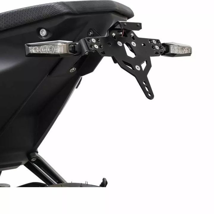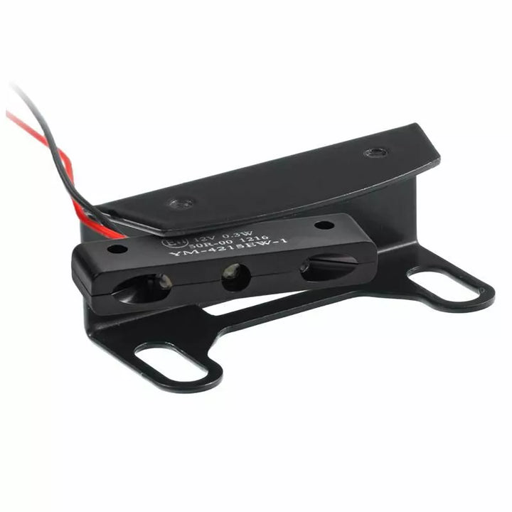De kentekenplaathouder is extreem duurzaam en weerbestendig., Zwart poeder bedekt. , De kentekenplaathouder kan worden gebruikt voor elke soort kenteken (175 mm breedte)., Geen wijziging van de vereiste kuip., Stepless aanpassing van de harkhoek., Indicatorondersteuning in 3 posities. Plaat., Speciale indicatorlichtmounts (afzonderlijk verkocht) vereist voor stockindicatorlichten., Kit omvat: 1 kentekenplaathouder incl. Montagekit., LED -kentekenlampje "e goedgekeurd" incl. Steun. Van: Zwitserland, Polen en Ierland.