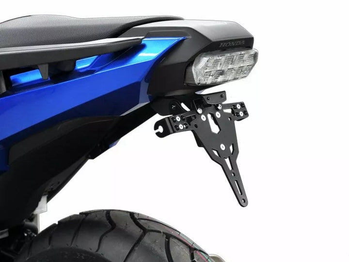 De kentekenplaathouder is extreem duurzaam en weerbestendig., Zwart poeder bedekt. , De kentekenplaathouder kan worden gebruikt voor elke soort kenteken (175 mm breedte)., Geen wijziging van de vereiste kuip., Stepless aanpassing van de harkhoek., Indicatorondersteuning in 3 posities. Plaat., Speciale indicatorlichtmounts (afzonderlijk verkocht) vereist voor stockindicatorlichten., Kit omvat: 1 kentekenplaathouder incl. Montagekit., LED -kentekenlampje "e goedgekeurd" incl. Steun. Van: Zwitserland, Polen en Ierland.