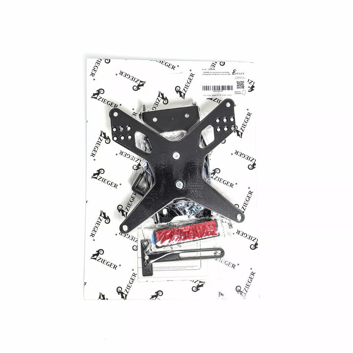 Er hoeven geen cadding-onderdelen te worden gewijzigd, de kentekenplaat voor elk type kenteken (breedte 175 mm), zwart poedercoat, de hellingsplaat is volledig aanpassen aan verzonken voor een platte ondersteuning van de kentekenplaat
