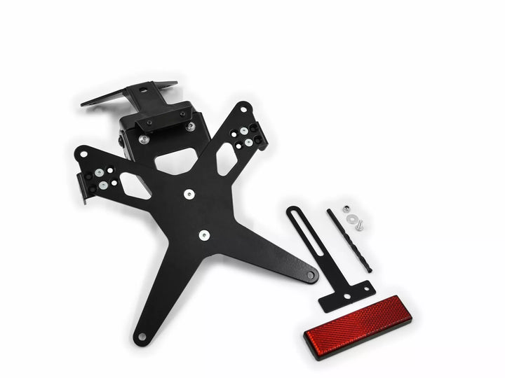 De kentekenplaathouder is extreem duurzaam en weerbestendig., Zwart poeder bedekt. , De kentekenplaathouder kan worden gebruikt voor elke soort kenteken (175 mm breedte)., Geen wijziging van de vereiste kuip., Stepless aanpassing van de harkhoek., Indicatorondersteuning in 3 posities. Plaat., Speciale indicatorlichtmounts (afzonderlijk verkocht) vereist voor stockindicatorlichten., Kit omvat: 1 kentekenplaathouder incl. Montagekit., LED -kentekenlampje "e goedgekeurd" incl. Ondersteuning., Licht terug met ondersteuning. Disclaimer: Belangrijk: voor het gebruik van deze kentekenplaathouder met de OEM Turn -signalen van Ducati -modellen (2015 - aanwezig) is een speciale houder nodig (Zieger Turn Signal Adapter OE Duc. Onderdelen Europe Onderdeelnummer: 20301971. Vendornummer: 10005790).